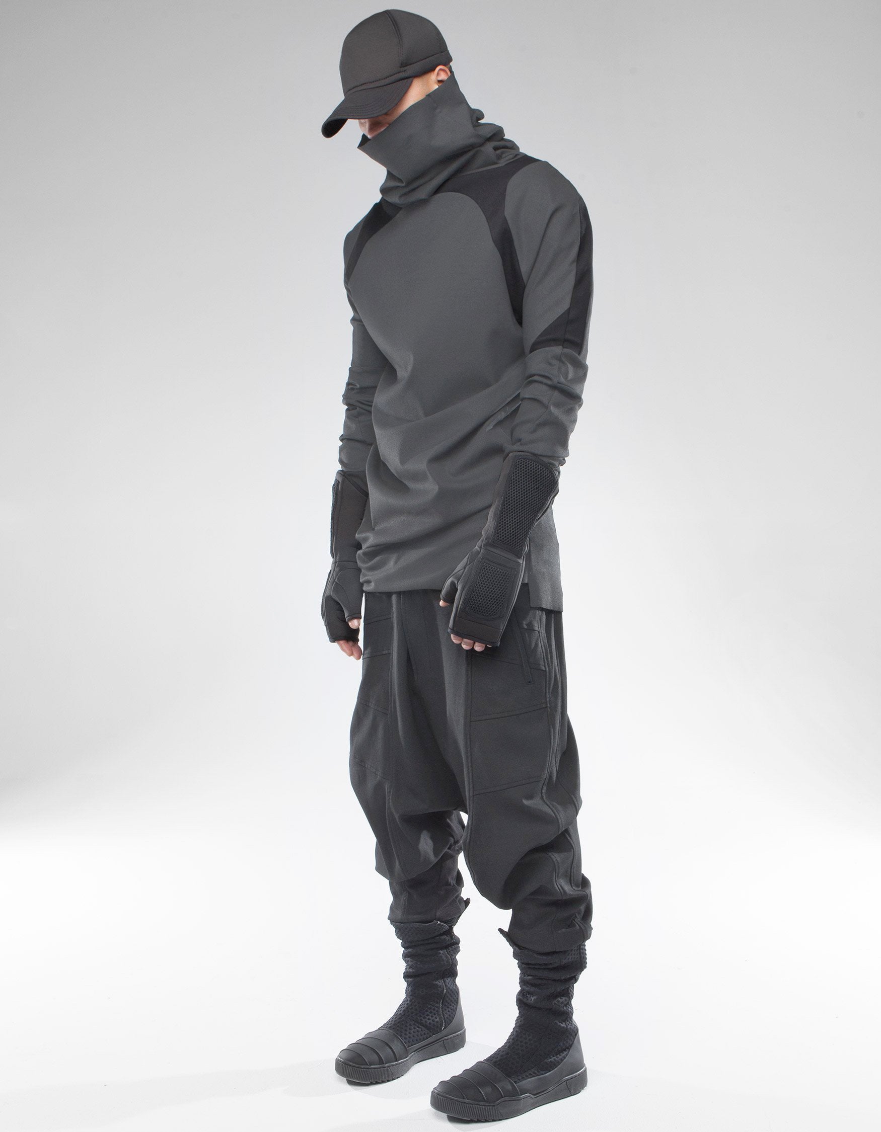 Dystopian fashion influenced a fashion that expressed dehumanization by hi-tech means such as cyberpunk style and Tech wear.