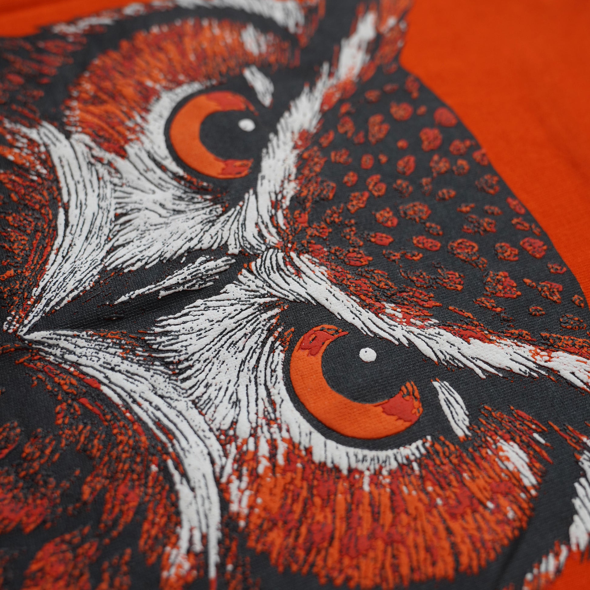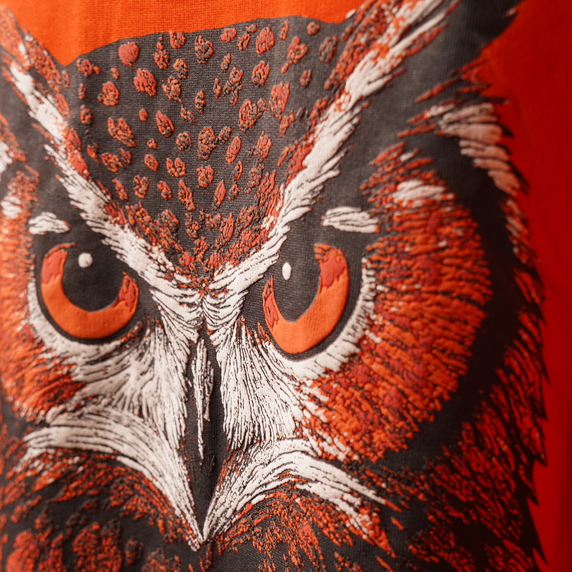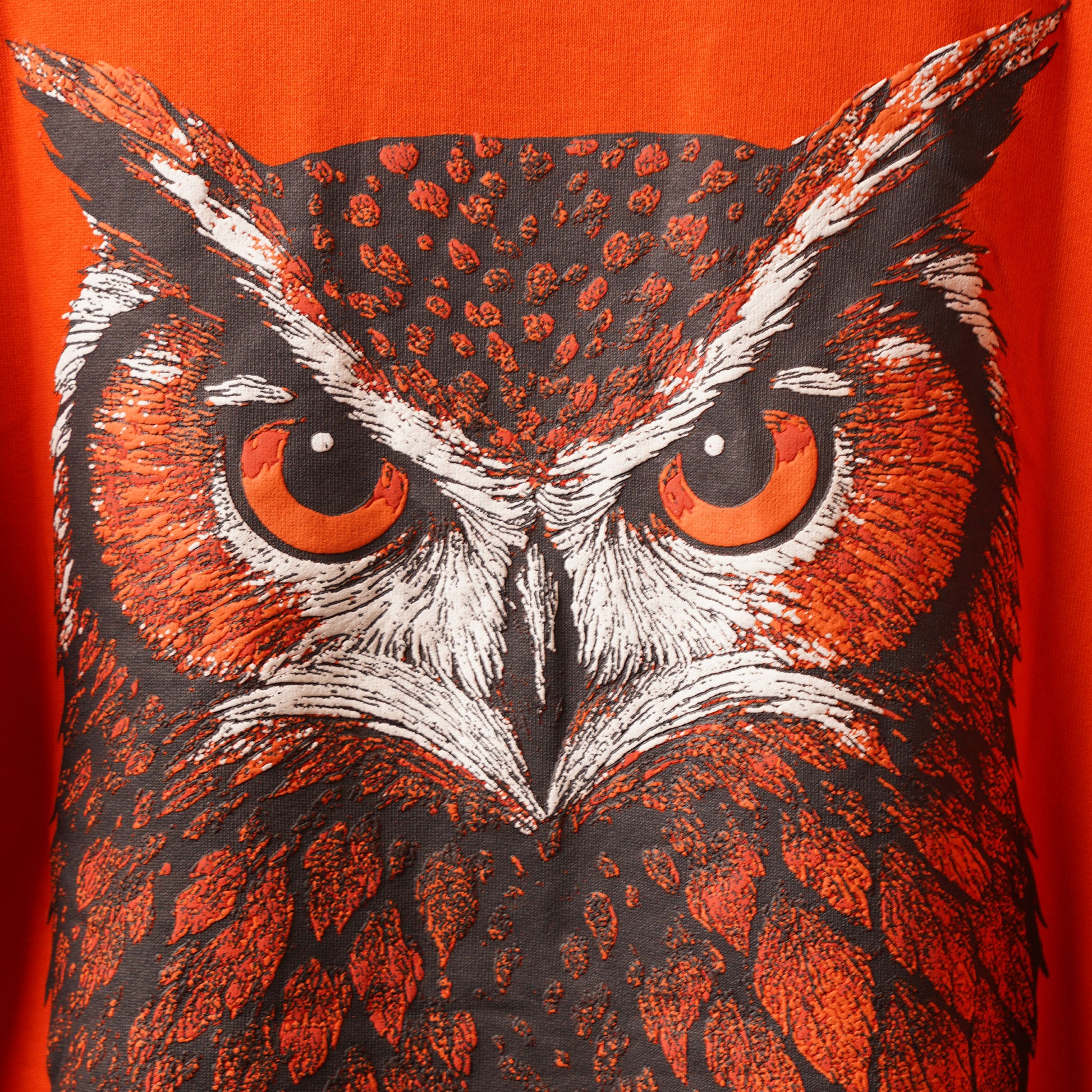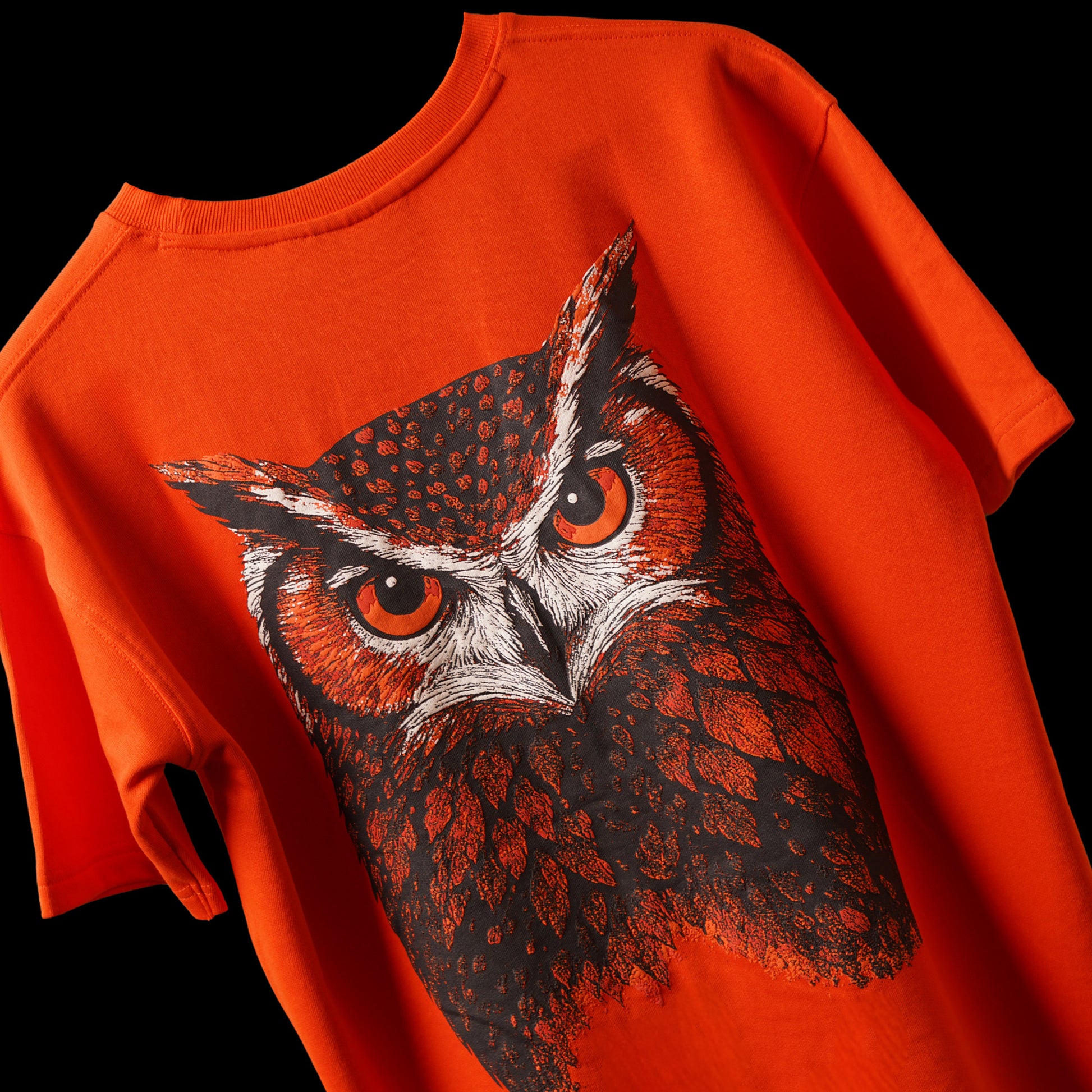 Turn heads in the Orange Owl Puff Print T-Shirt – a bold, oversized essential made for streetwear lovers.