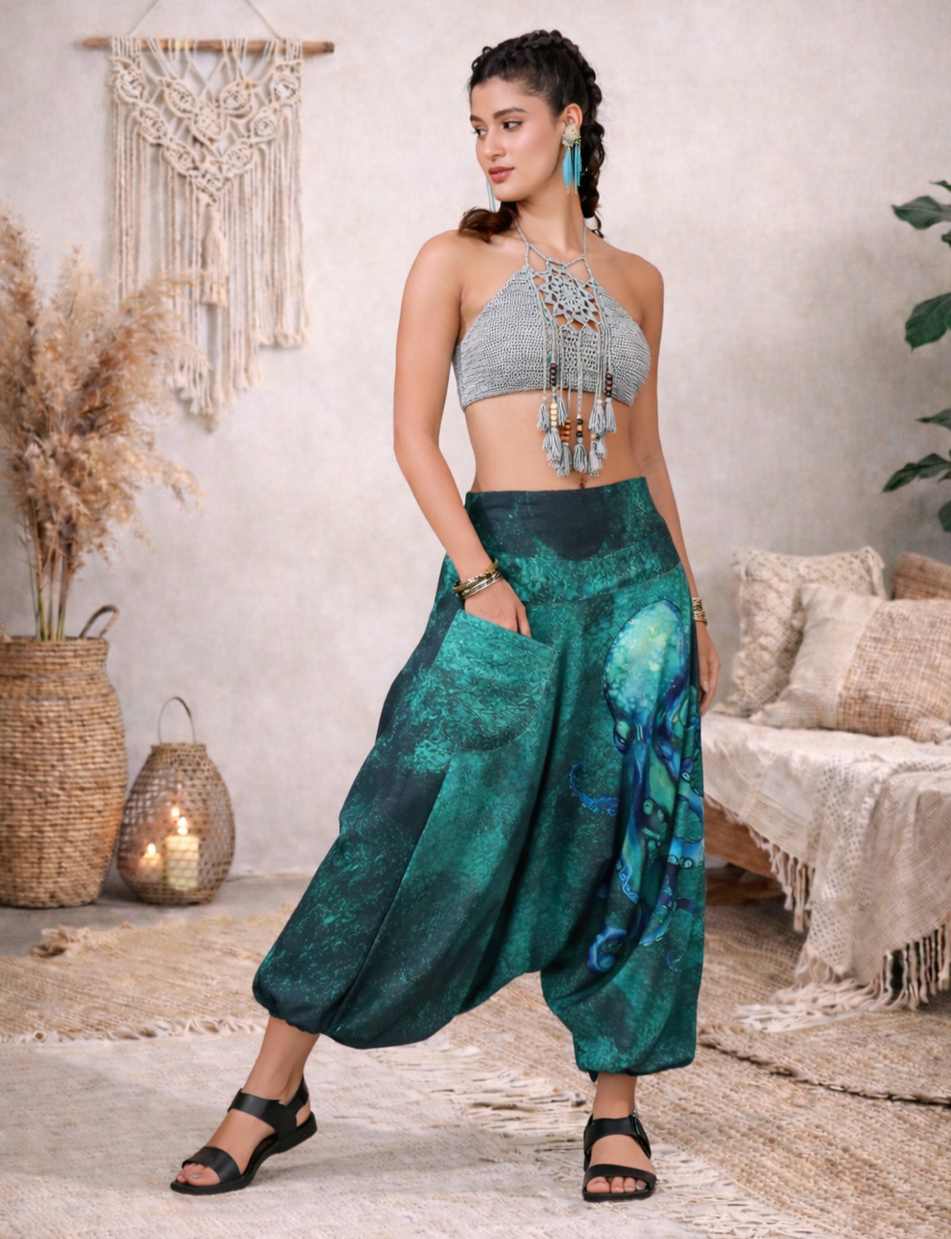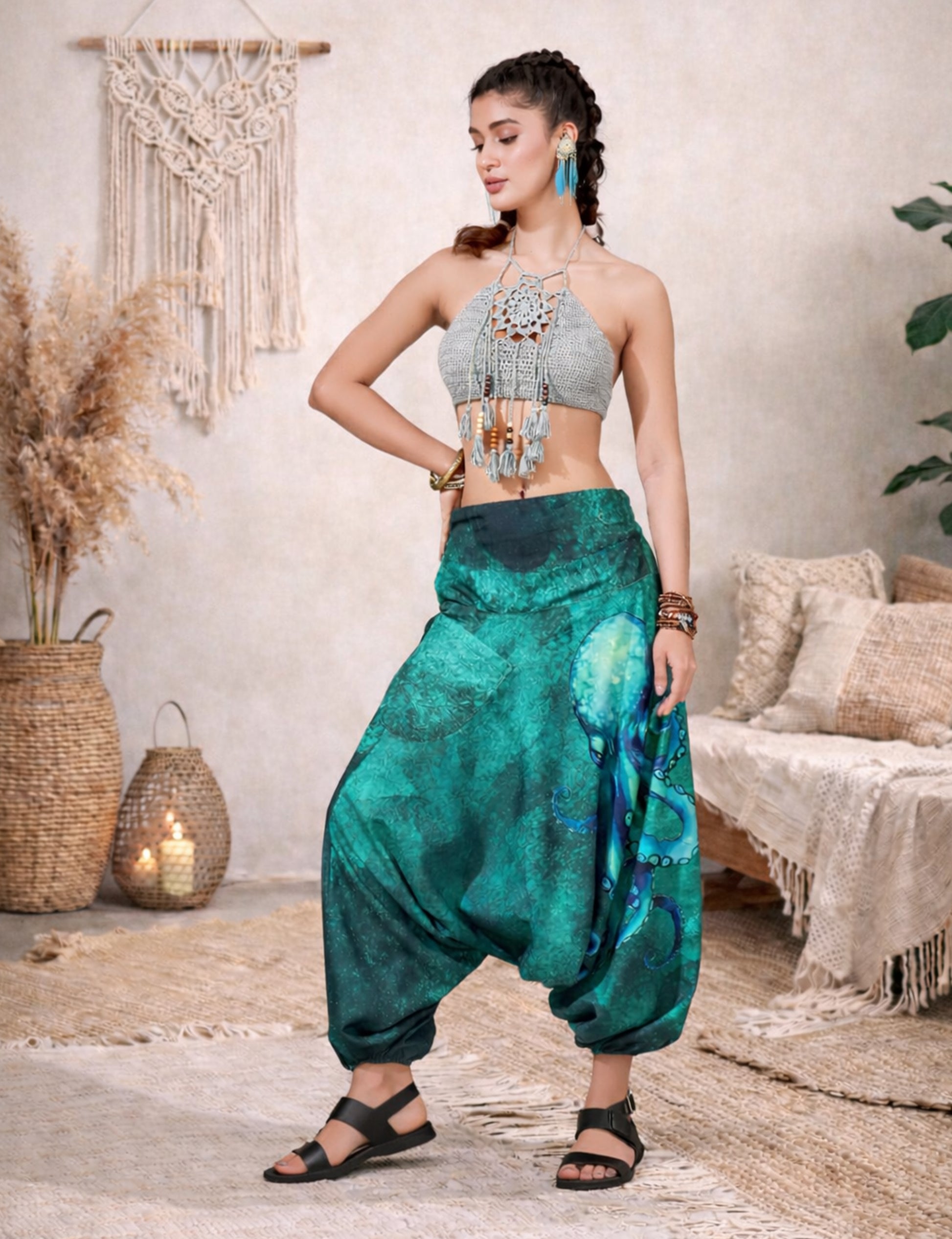 Embrace the exotic allure of Genie pants with our ethnic print options, adding a touch of cultural flair to your ensemble. Whether you're dressing up for a festival, casual hangout, or a yoga session, these versatile pants will be your go-to choice.